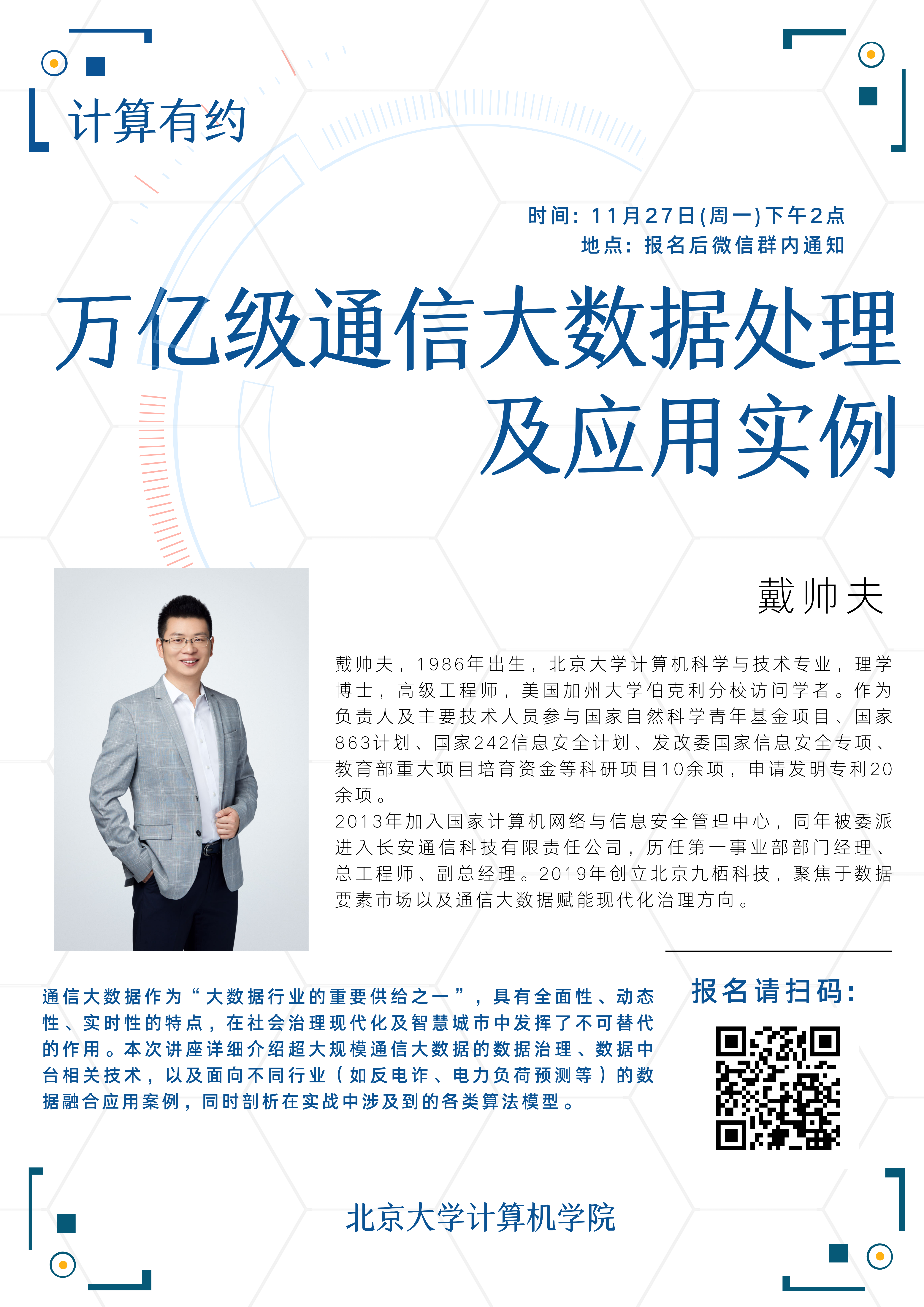 讲座通知 | 万亿级通信大数据处理及应用实例