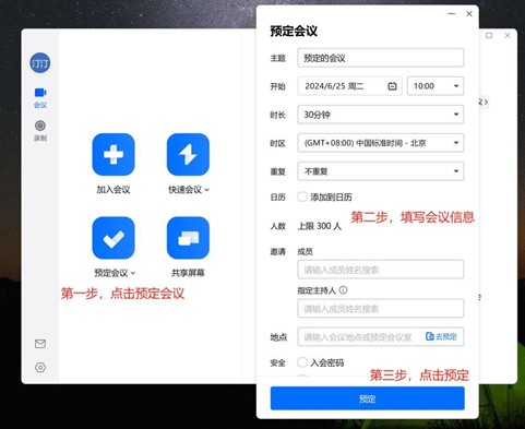 登录成功后,按如下步骤预约会议: