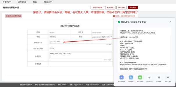 4. 进入欧美大片ppt免费大全信息门户-办事大厅-腾讯会议预约申请,填写会议号等信息并提交