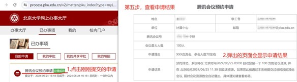 5. 点击刚刚提交的预约申请,查看申请结果上述操作的截图如下: