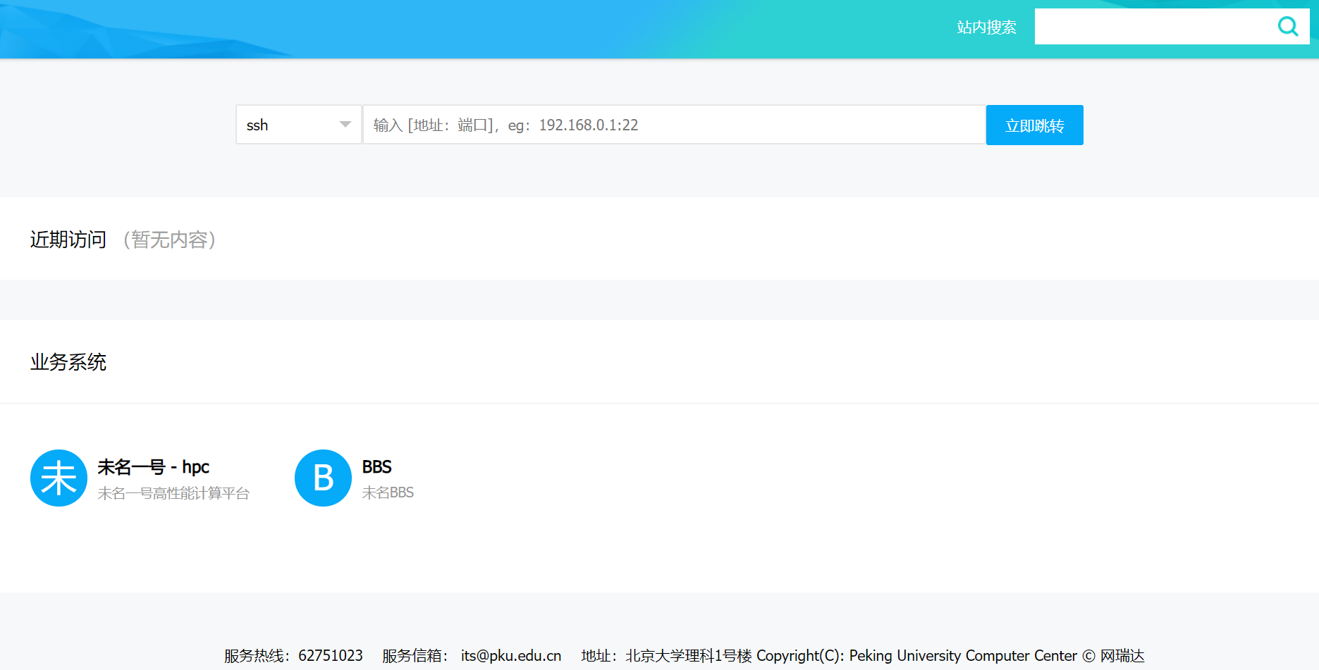 用户登录门户页后,可以看到访问跳转框,近期访问和业务系统。