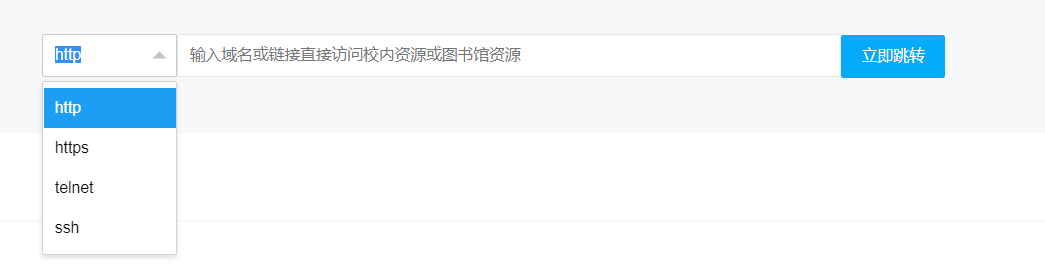 在访问跳转框中选择需要使用的访问协议(http、http、telnet、ssh、rdp、vnc),输入IP或者域名,点击“立即跳转”。如果访问的目标地址带有端口号,则需在跳转框中输入“IP:端口号”或者“域名:端口号”。